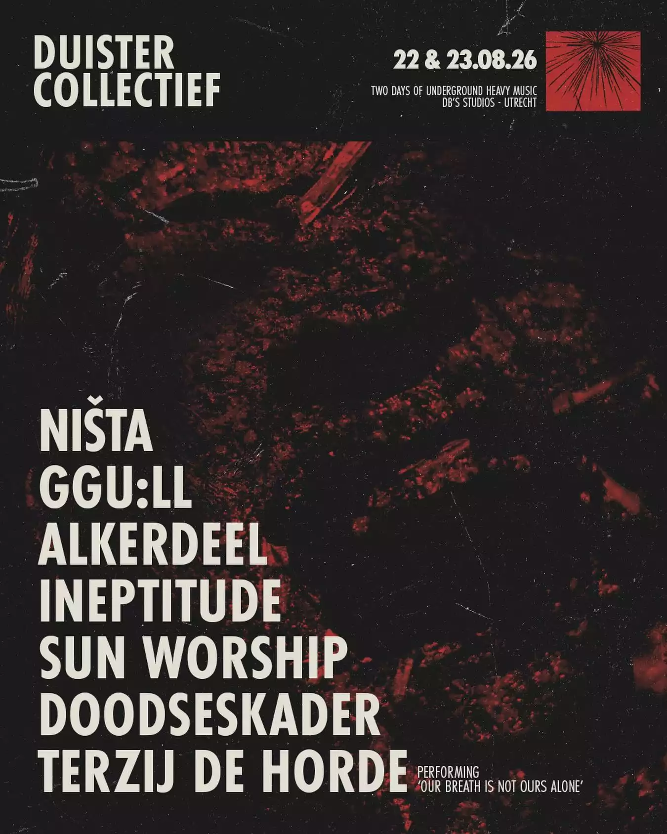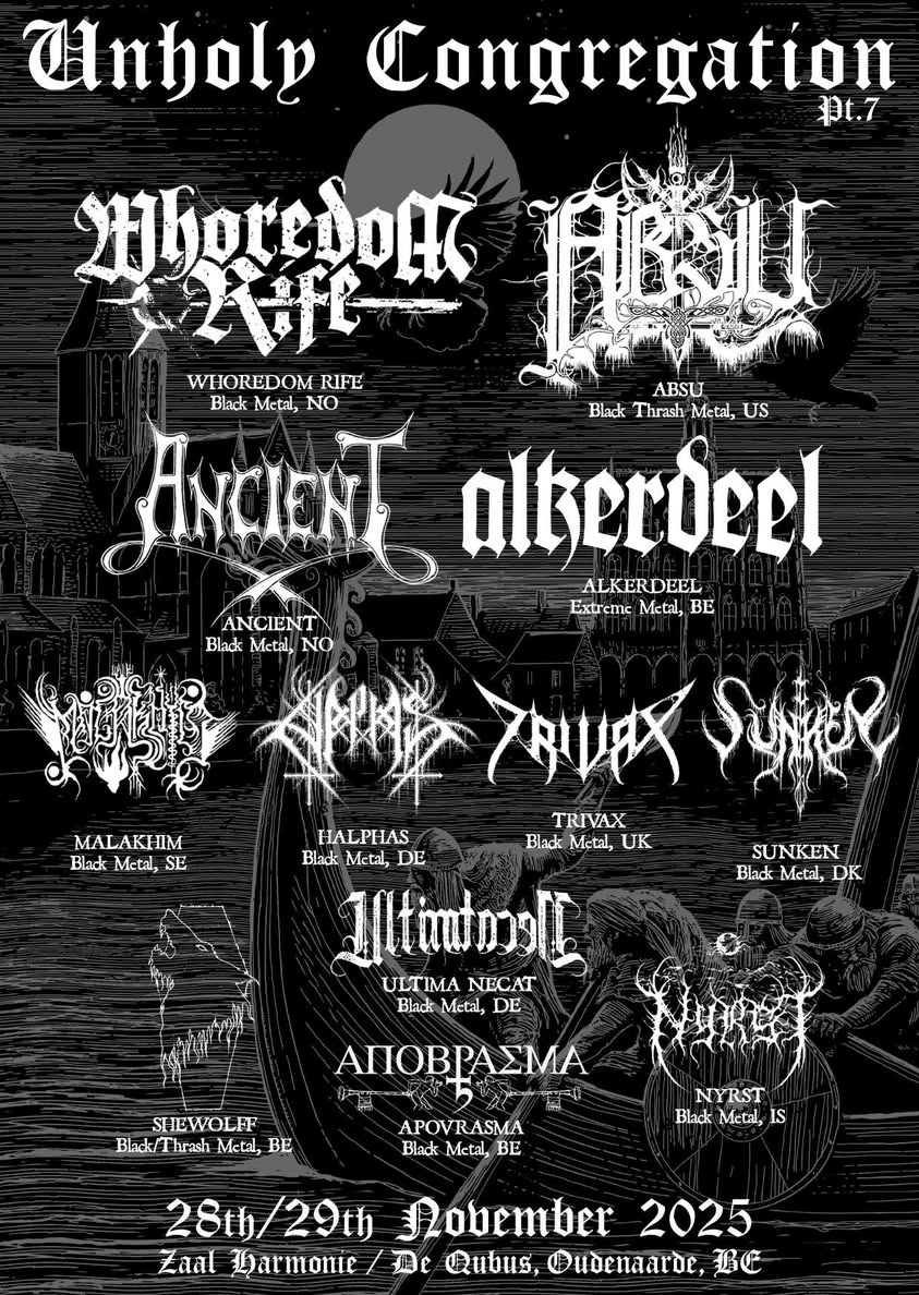 Alkerdeel is an extreme metal band with influences that range from Darkthrone to Burning Witch and everything in between, be it black, doom, punk, crust, death, kraut, noise whatever. And as we’re from Belgium, there’s a huge amount of surrealism and stench involved also.